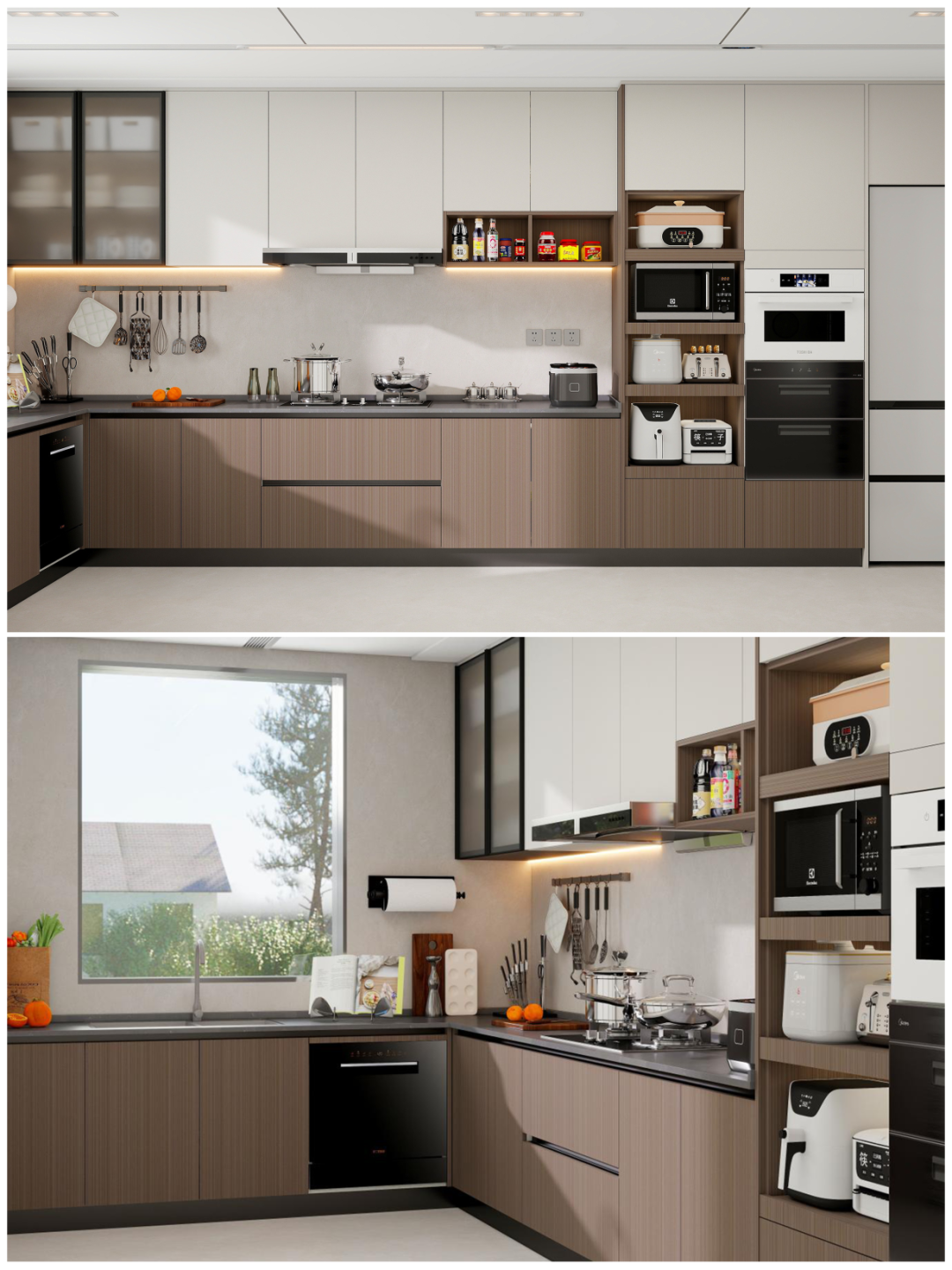 空間利用(yong)率高(gao),轉角設(shè)計(ji)形成(cheng)洗切炒黃金三角動(dòng)線(xiàn)📐可(kě)利用(yong)轉角櫃安(an)裝(zhuang)旋轉拉籃或飛碟拉籃,提升收納能(néng)力(li)