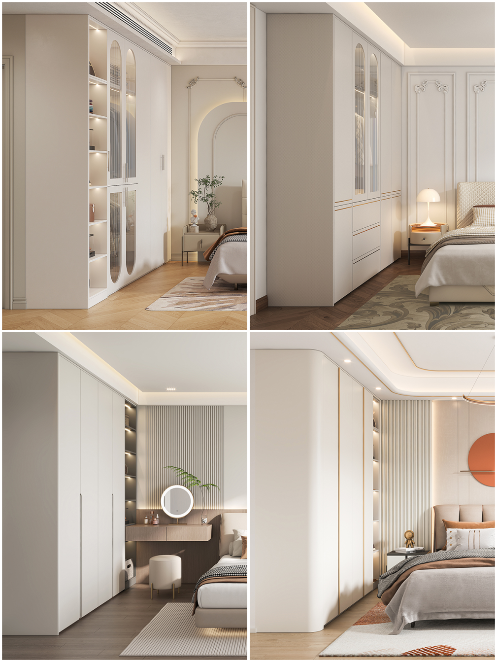 衣櫃采用(yong)懸浮設(shè)計(ji),離地輕盈通(tong)透,穿插牀(chuang)頭櫃,設(shè)計(ji)感十足✨