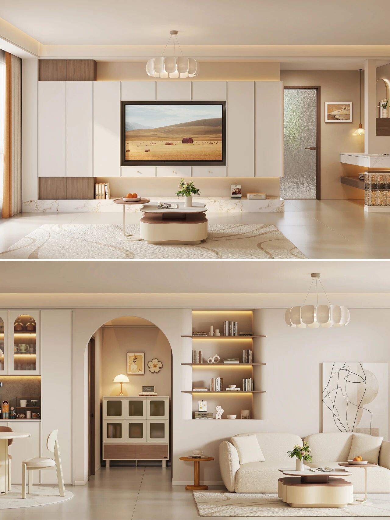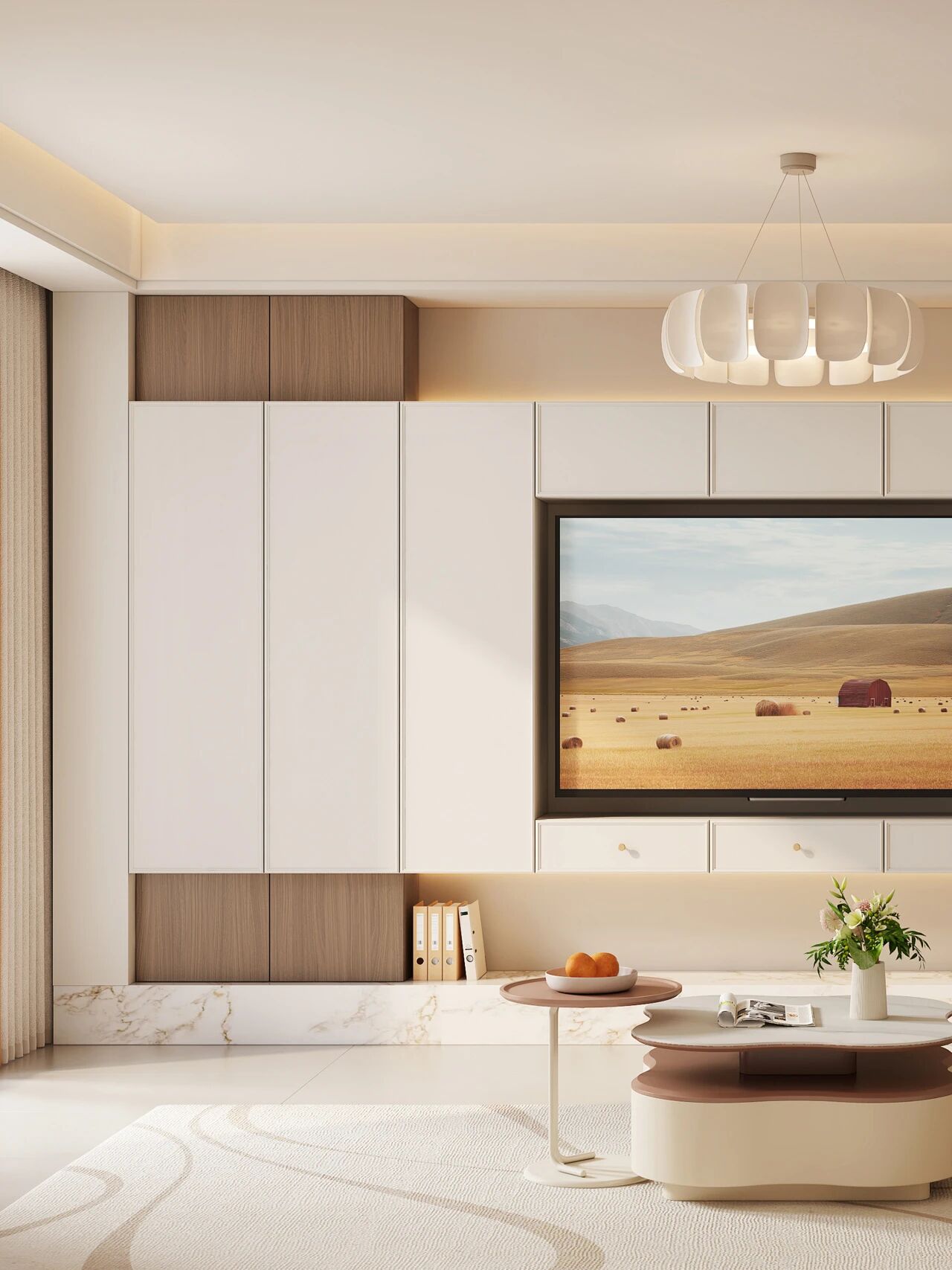 電(dian)視櫃上下懸空+穿插設(shè)計(ji)