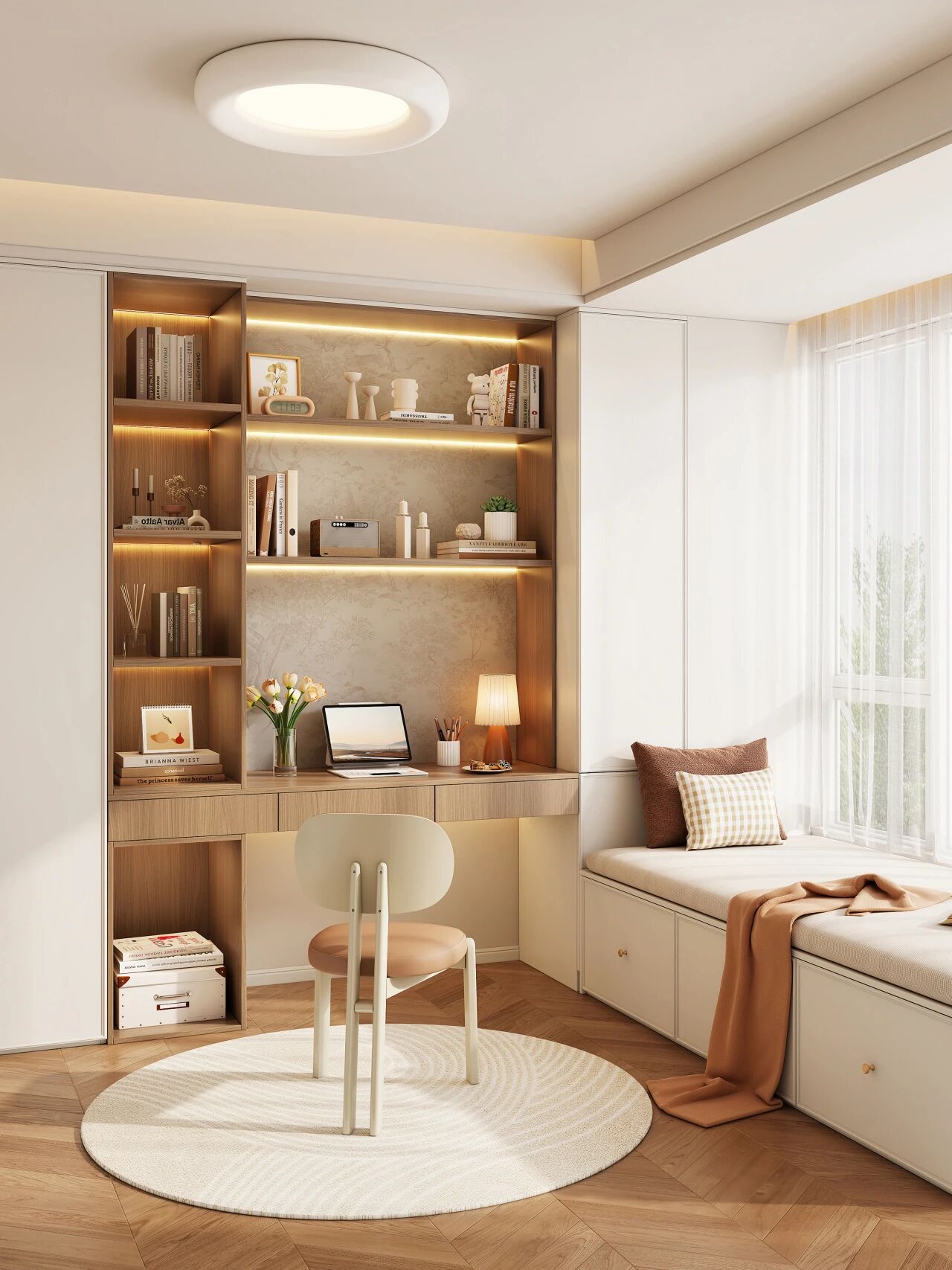 書櫃+書桌+飄窗一(yi)體(ti)化設(shè)計(ji)📚