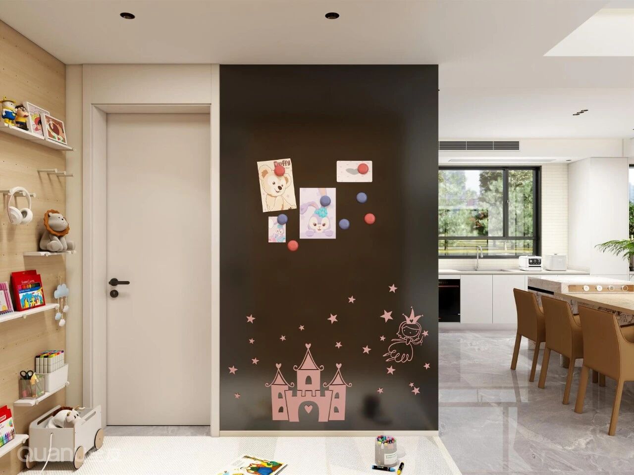 如果覺得大(da)白牆太單(dan)調,不妨把過(guo)道牆面改造(zao)爲(wei)磁吸(xi)黑闆牆。