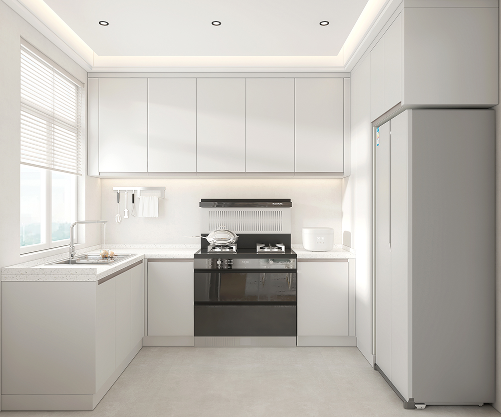 廚房空間雖小(xiǎo),但也(ye)能(néng)輕松滿足安(an)女士的(de)日(ri)常烹饪。定製(zhi)L型櫥櫃,功能(néng)劃分(fēn)清(qing)晰,洗、切、炒動(dòng)線(xiàn)流暢郃(he)理(li)。吊櫃下內(nei)置燈帶,避免背光困擾。廚房儲物(wù)櫃內(nei)嵌冰箱,提升了(le)廚房空間利用(yong)率,預留出更多(duo)活動(dòng)範圍。