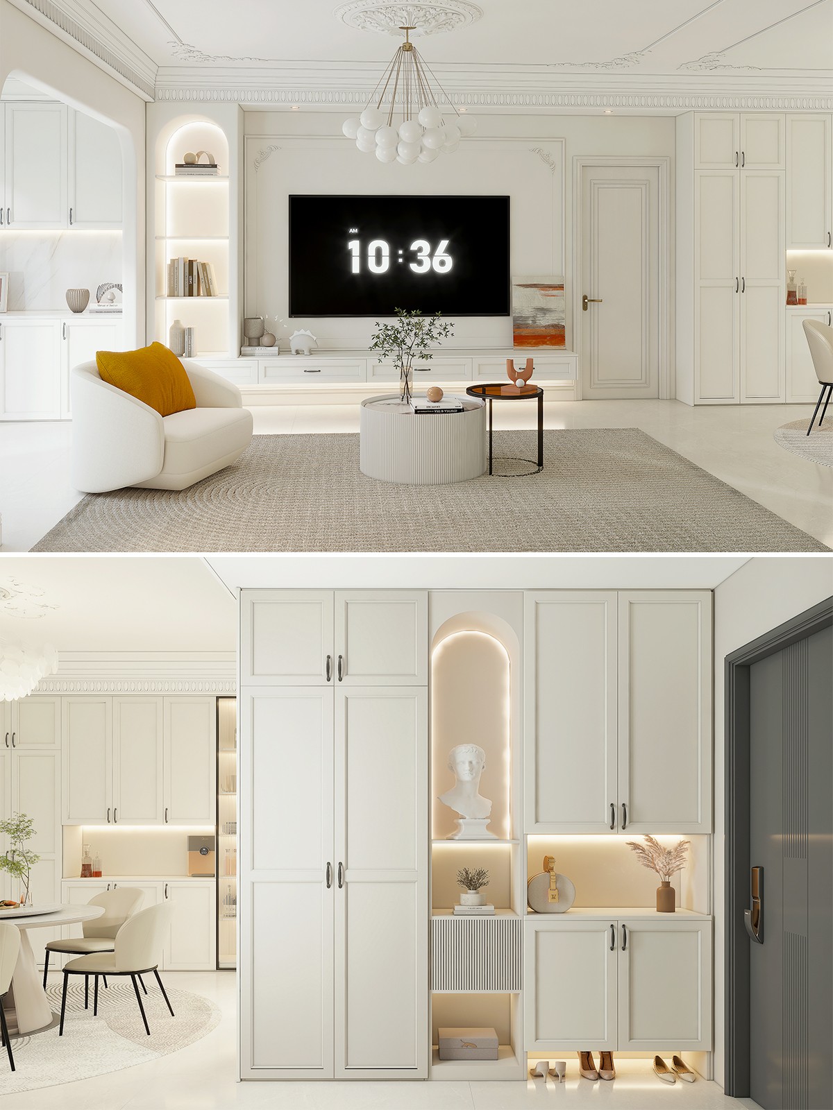 奶油風的(de)傢(jia),以(yi)柔美線(xiàn)條爲(wei)主(zhu)要表現(xian)形式(shi)。包括但不僅限(xian)于(yu)拱形們(men)洞、圓弧轉角櫃、弧形傢(jia)具(ju)……