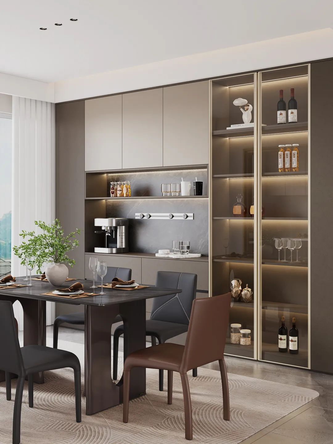 ①餐邊櫃充滿藝術(shù)美感,石紋背闆+燈帶設(shè)計(ji),營(ying)造(zao)出意式(shi)輕奢的(de)奢雅氛圍✨