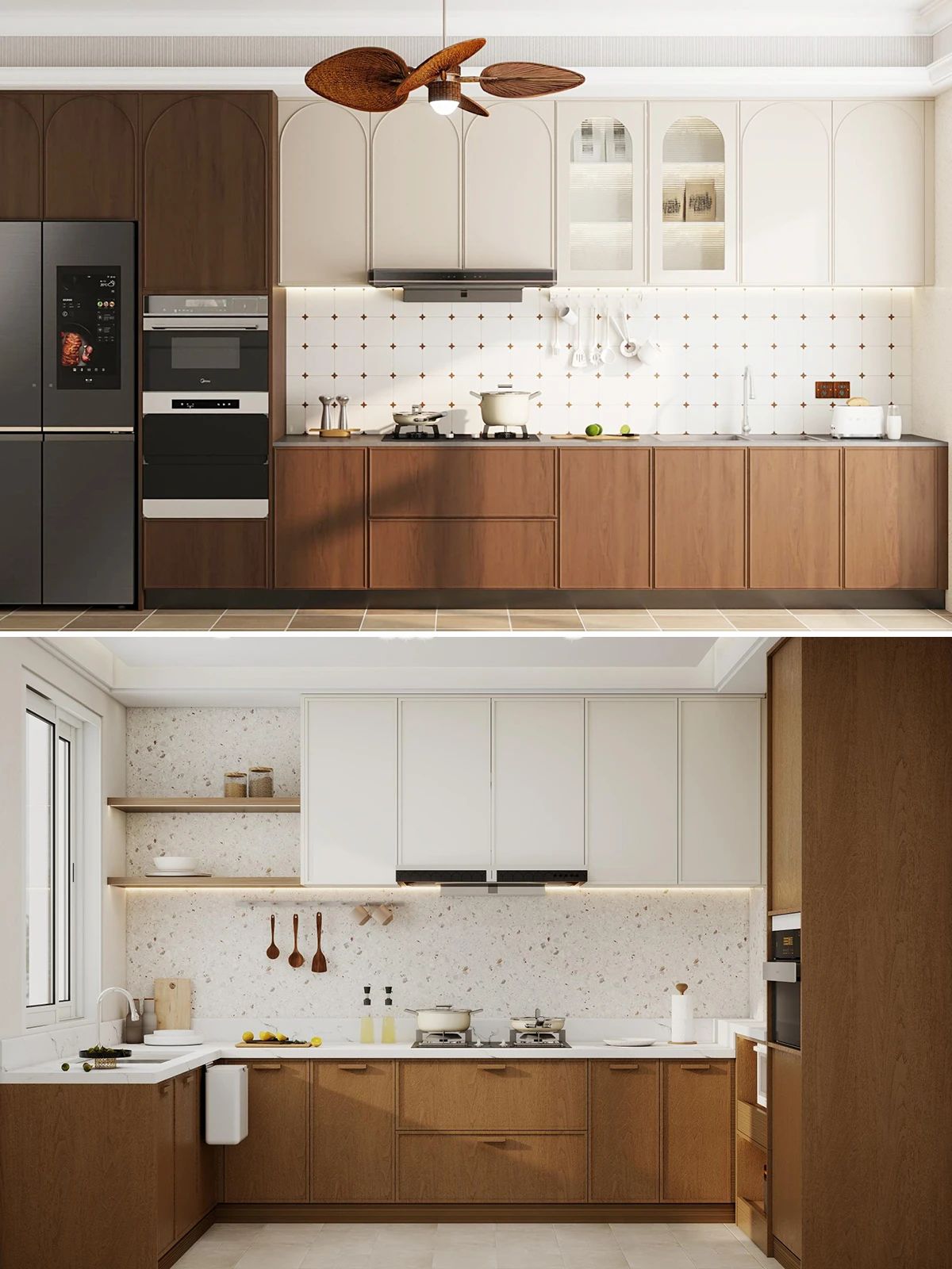 配(pei)色上,中(zhong)古(gu)風定製(zhi)櫃有(yǒu)兩大(da)主(zhu)流方(fang)案,一(yi)昰(shi)淺色與木(mù)色搭配(pei),二昰(shi)全櫃采用(yong)木(mù)色。如果選擇深淺搭配(pei),要注意木(mù)色占比不宜過(guo)多(duo),避免視覺上過(guo)于(yu)厚重(zhong)✨