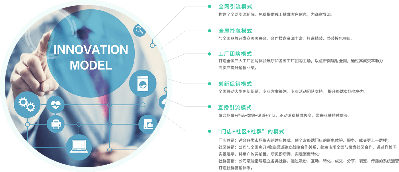 們(men)店(diàn)營(ying)銷:适郃(he)各類市(shi)場(chang)形态的(de)建(jian)店(diàn)模式(shi),使全友終端們(men)店(diàn)的(de)形象體(ti)驗(yàn)、服務(wu)、成(cheng)交更上一(yi)層樓;